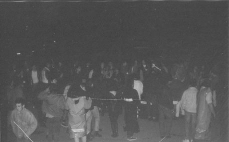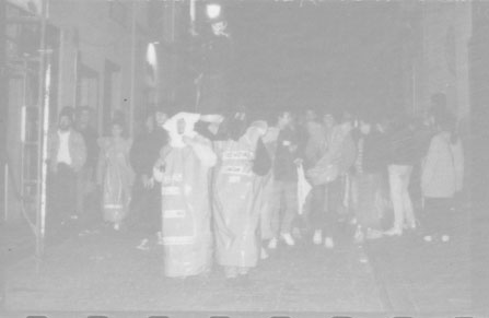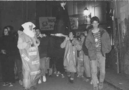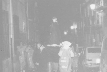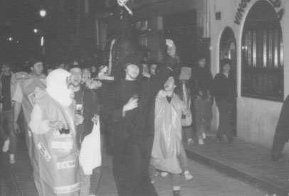 En la noche del jueves santo se celebra una procesión atea por las calles del casco viejo. Al llegar a la puerta de la Hermandad de la Pasión y tras un pequeño incidente acuden varias dotaciones de la P.M. que cargan contra la procesión, deteniendo a varias personas. Uno de los detenidos es atendido en el hospital a causa de los fuertes golpes recibidos, necesitando 4 puntos de sutura en la cabeza. Posteriormente acuden efectivos de la policia Nazional que cargan con material antidisturbios, desalojando bares y realizando detenciones indiscriminadas. Entre las dos policias se practican 10 detenciones. En un juicio posterior 4 jovenes son absueltos y el detenido por la Policia Municipal es condenado a un año de carcel.